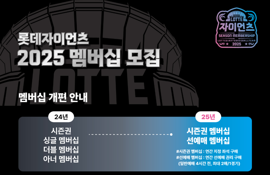 맴버쉽 회원 모집은 야구 개막 전에 진행하며 롯데자이언츠 앱이나 홈페이지에서 가입 가능합니다.